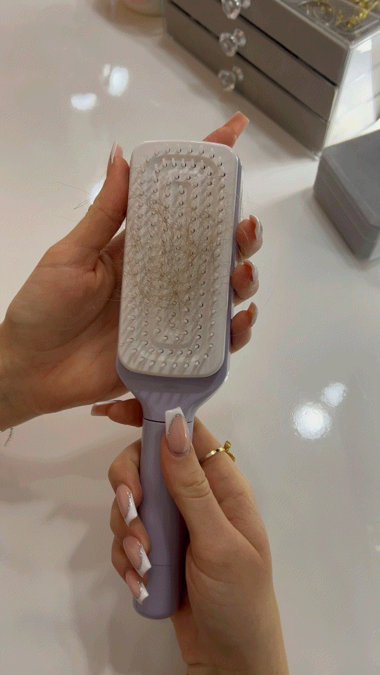 Die selbstreinigende Bürste bietet eine innovative Lösung für eine mühelose Haarpflege. Mit einem praktischen Drehmechanismus zur Reinigung bleibt sie stets einsatzbereit, während ihr durchdachtes Design für eine angenehme Anwendung sorgt.